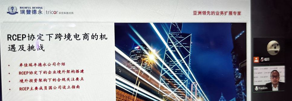 卓佳瑞豐德永行政總裁龔彥斌先生本次圍繞“RCEP協(xié)定下跨境電商企業(yè)的機(jī)遇與挑戰(zhàn)”為主題,先后從“RCEP協(xié)定下的企業(yè)境外架構(gòu)搭建”、“境外投資架構(gòu)下的合規(guī)關(guān)注要點”兩大核心部分展開解析,并分享了RCEP主要成員國公司設(shè)立指南。