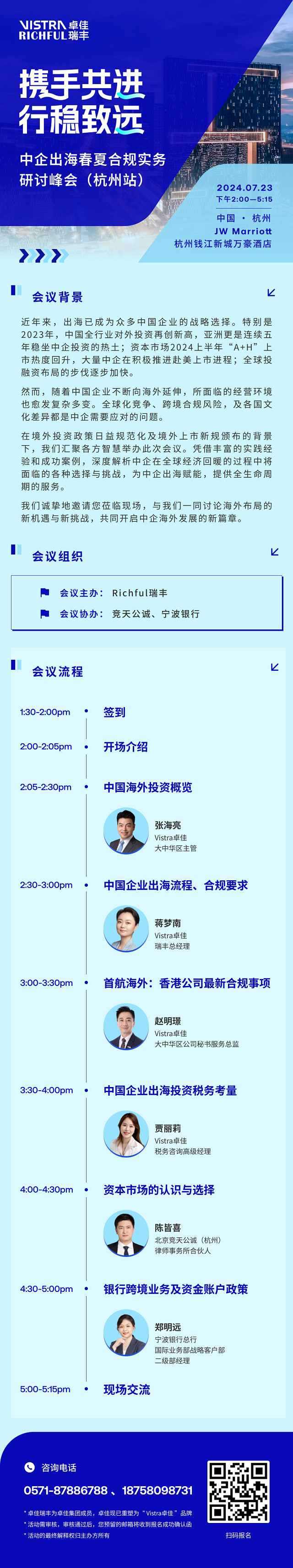 攜手共進(jìn),行穩(wěn)致遠(yuǎn):卓佳瑞豐“中企出海春夏合規(guī)實(shí)務(wù)研討峰會(huì)(杭州站)”成功舉辦