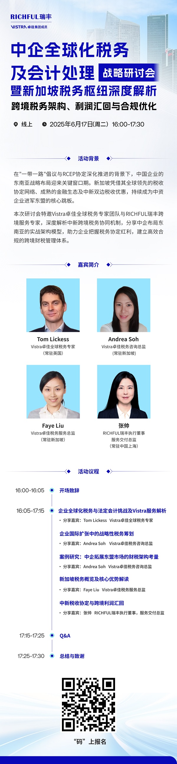 邀請函|6月17日 中企全球化稅務及會計處理戰(zhàn)略研討會暨新加坡稅務樞紐深度解析