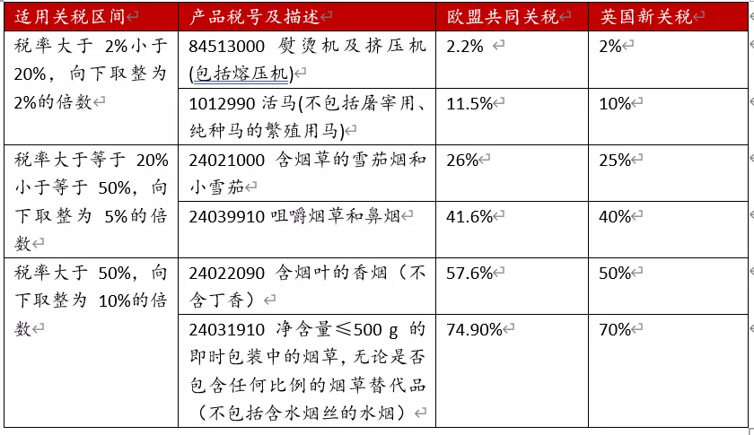 對稅率高于2%的關稅,在不提高現行關稅稅率的前提下,取消稅率中的小數、將稅率向下取整為2%、5%或10%的倍數。以下為關稅向下取整示例: