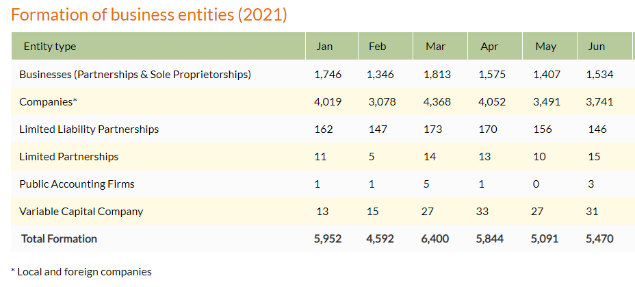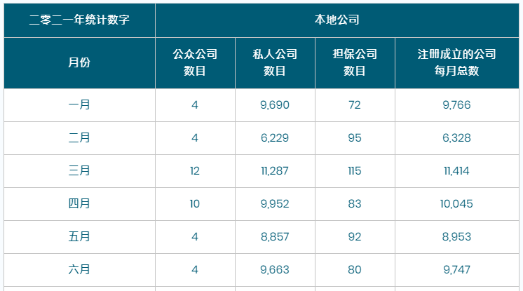 根據(jù)新加坡會(huì)計(jì)與企業(yè)管理局(ACRA) 于2021年7月1日發(fā)布的統(tǒng)計(jì)數(shù)據(jù),新加坡上半年的新設(shè)公司總數(shù)為33,349家。得益于全球經(jīng)濟(jì)復(fù)蘇,新加坡的新設(shè)公司同樣有所回暖,但是無(wú)論是現(xiàn)有公司數(shù)量、上半年新增公司數(shù)量,還是6月新增公司數(shù)量,其與香港公司的表現(xiàn)都仍有一定差距。