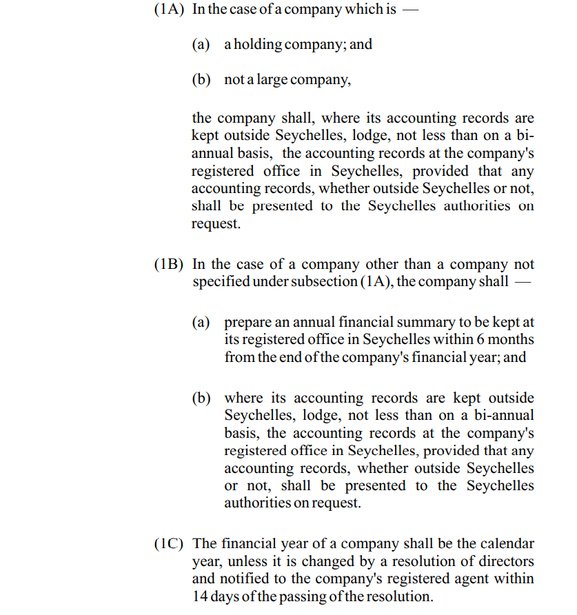 雖然許多修訂旨在改進現(xiàn)有的條款,但修訂法也引入了對塞舌爾實體(包括國際商業(yè)公司 (IBC))的最新(并顯著增加的)會計記錄備存要求。