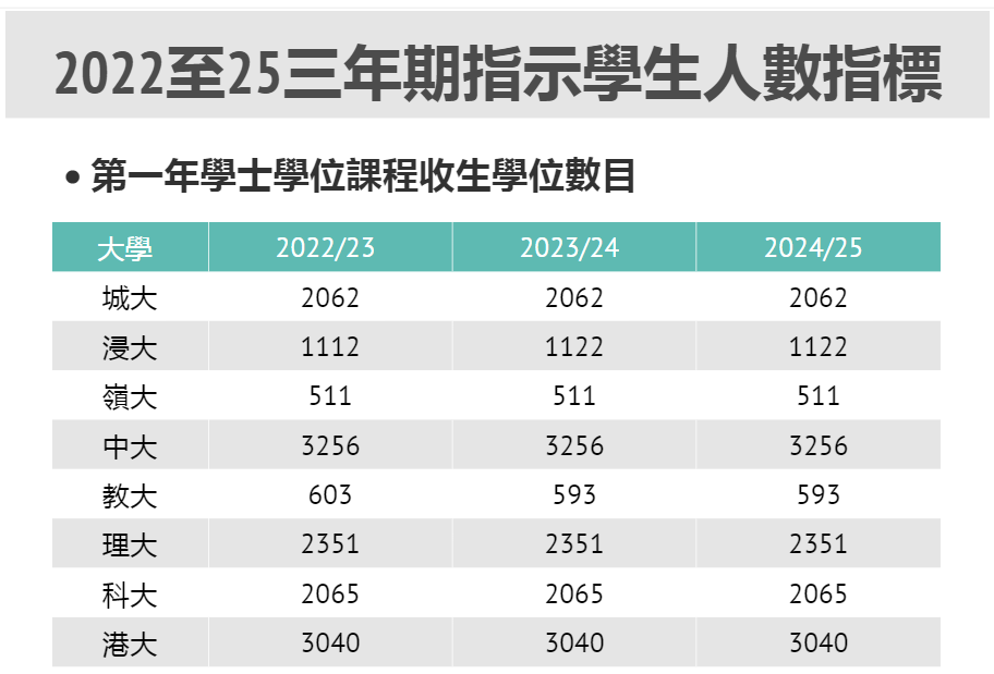 下表是2022年~2025年港八大的收生數目: