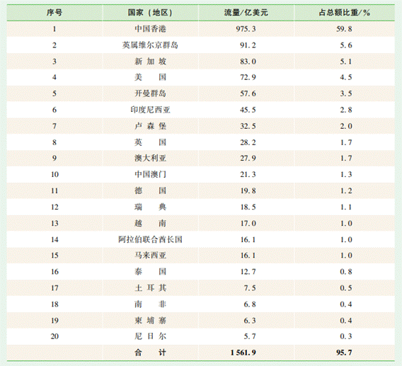 圖表4. 2022年中國對外直接投資流量前二十位的國家(地區(qū))