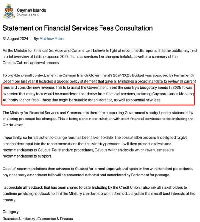 開(kāi)曼群島政府近日發(fā)布咨詢(xún)文件,建議于2025年1月1日起調(diào)高所有開(kāi)曼群島公司的政府牌照費(fèi)用。關(guān)于費(fèi)用調(diào)整的原因,開(kāi)曼群島金融服務(wù)部的解釋中提到:“為了幫助政府滿(mǎn)足2025年的預(yù)算需求,將通過(guò)探索擬議費(fèi)用變更來(lái)支持政府的預(yù)算政策聲明,許多來(lái)自金融服務(wù)的費(fèi)用將被考慮,包括開(kāi)曼群島金融管理局的許可費(fèi),可能適當(dāng)增加的費(fèi)用,以及潛在的新費(fèi)用。因此,將對(duì)開(kāi)曼群島公司年費(fèi)費(fèi)用進(jìn)行調(diào)整,以彌補(bǔ)增加的服務(wù)交付成本。“