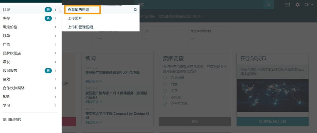 ① 選擇“庫存”>“管理亞馬遜庫存”;