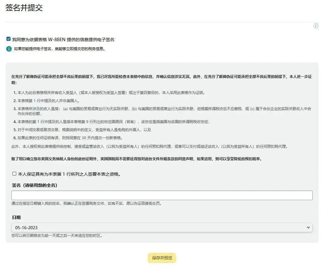 4、點擊“繼續(xù)”,提供電子簽名并提交以供亞馬遜完成驗證。