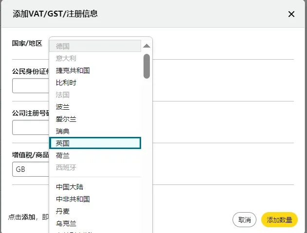 注意:在某些國家/地區(qū),可能需要向稅務(wù)機(jī)構(gòu)注冊納稅人識別號(TIN)才能獲取增值稅登記號。