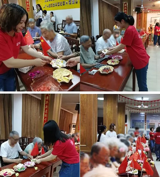 集團杭州公司的員工志愿者們提前為老人們準備了多種新鮮瓜果、養(yǎng)生干果和食品,根據每位老人不同的身體狀況和口味喜好,暖心地送到他們手邊。