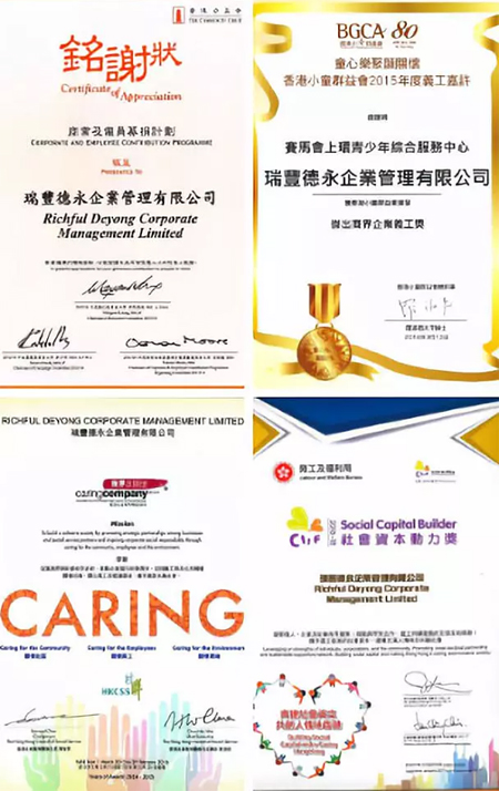 榮獲香港社會服務聯會頒發(fā)的香港商界展關懷榮譽獎