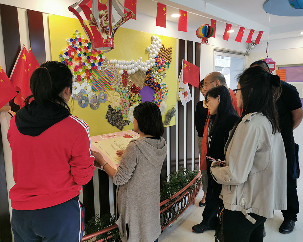 而后,大班的小朋友進(jìn)行了舞蹈表演。在舞蹈表演過程中,有一些小朋友動作慢跟不上節(jié)奏或者偏離隊伍,旁邊的小朋友總會悄悄地把他拉回隊伍,拉著手教他拍手并領(lǐng)著轉(zhuǎn)圈,而偏離的小朋友總是很乖的聽從“指揮”,并無顯著差異。劉園長說這就是同伴同學(xué)融合教育的力量,不是對特殊兒童進(jìn)行隔離教育而是讓普幼特幼同伴同學(xué),尊重個體差異,使每個兒童都得到最佳的成長機(jī)遇。 贈書環(huán)節(jié)中,我們與孩子們進(jìn)行了親切的交流,雖然有些孩子只能會說簡單的“阿姨”或者“謝謝”,但是他們臉上洋溢著真誠而又幸福的笑容,令人動容。劉園長表示,對于一部分特殊的孩子來說,就是說簡單的“阿姨”兩個字,學(xué)三個月能說出來就是很大進(jìn)步了。如此可見,融合教育事業(yè)任重而道遠(yuǎn),辛勤付出的教師值得點贊和令人敬佩。 孩子們拼成的中國地圖的版圖下放著一本厚厚的感恩冊,十分醒目,里面詳細(xì)地記錄了從開園至今所獲的捐贈記錄。劉園長向我們介紹了這些年參與過捐贈的企業(yè)機(jī)構(gòu)和個人,所獲捐贈之物從教室裝修、地板更換、暖氣安裝到書籍、衣服、各類玩具、生活必需品等等,一一道來,如數(shù)家珍。 最后劉園長介紹了幼兒園的發(fā)展歷程及未來規(guī)劃,詳細(xì)談到了幼兒園一路走來的艱辛,孩子們?nèi)谌肷鐣睦щy及社會各界人士的關(guān)愛,也呼吁更多的人關(guān)愛到這個群體,給自閉癥人群尊重和理解。