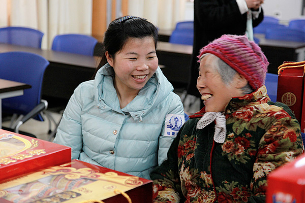 當(dāng)天我們見到了6位低保戶老人,她們都在生活中有著這樣或那樣的不美滿,但是一直對(duì)這個(gè)社會(huì)和幫助她們的人心存感恩。南京子公司的女孩子們看見老人們都熱情的圍繞著她們,陪她們聊家常、聊新年、聊子女、聊生活,現(xiàn)場氣氛十分溫馨。