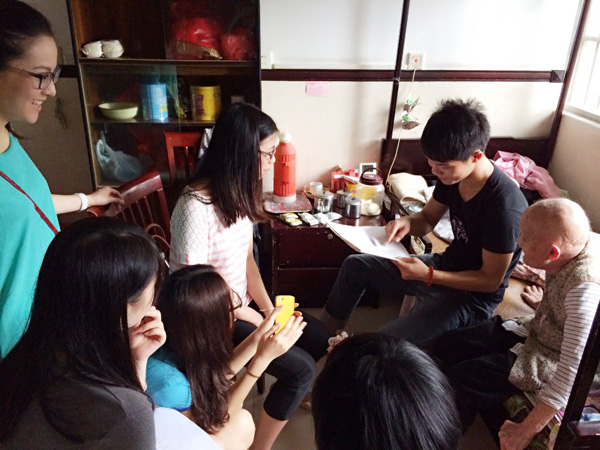 婆婆叮囑我們,年輕人要多運(yùn)動(dòng),注意休息保護(hù)好自己的眼睛。還跟我們分享年輕時(shí)候生活的艱辛,婆婆的活潑開(kāi)朗使氣氛都活躍起來(lái),她告訴我們要時(shí)刻保持樂(lè)觀(guān)愉快的心情,年紀(jì)雖然大,但是心態(tài)要年輕,還要每天堅(jiān)持讀報(bào)。