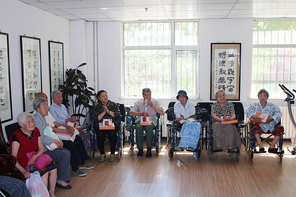 我們在干凈明亮的活動室里見到老人們,送上了我們精心準(zhǔn)備的毛毯、護(hù)腰和水杯等禮物。禮物雖輕但是卻帶去我們對老人們的關(guān)懷之情。