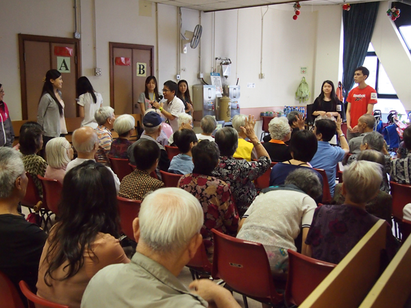 同事們還特意安排了一些節(jié)目,例如:唱歌,做動作引導(dǎo)長者們猜謎語,拋氣球等,讓老人們通過這些小游戲舒展筋骨。