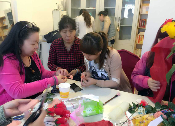 兩個(gè)小時(shí)的公益活動(dòng)很快就結(jié)束了,看著自己親手做出來的漂亮花兒大家都很開心也很滿足,同時(shí)也希望這些花兒可以給殘疾人媽媽帶去歡樂。