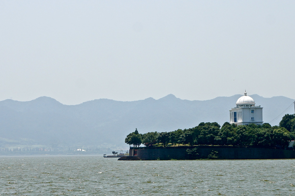 上午9:40活動正式開始,我們從東錢湖游客中心出發(fā),每輛車后面都打出了統(tǒng)一旗幟,展示環(huán)保口號,吸引了不少路人的駐足觀看。